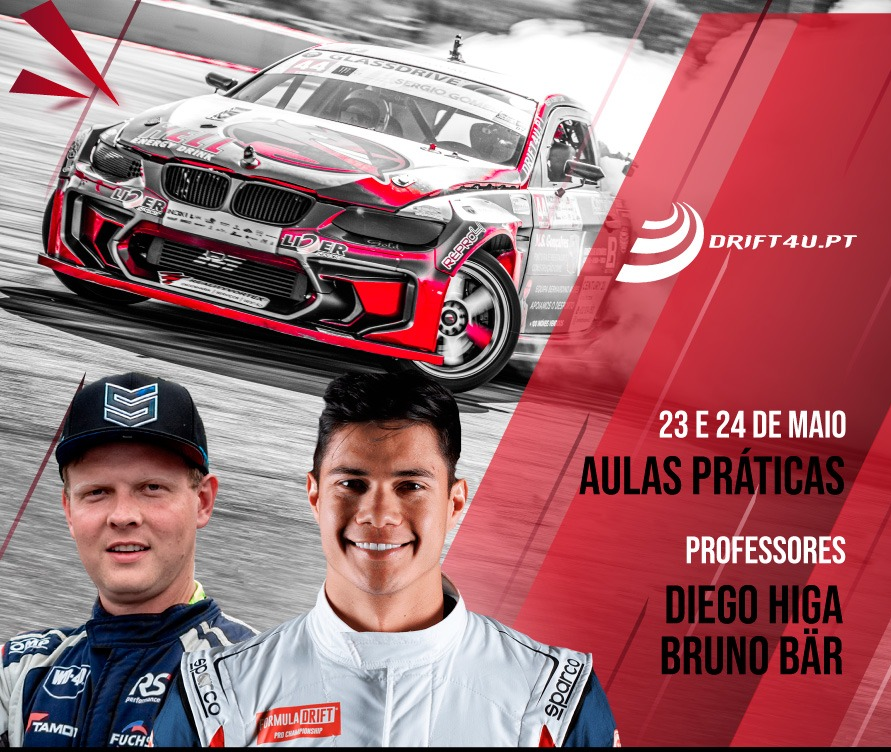 Curso presencial de Drift de um dia com os pilotos brasileiros Diego Higa e Bruno Bär.